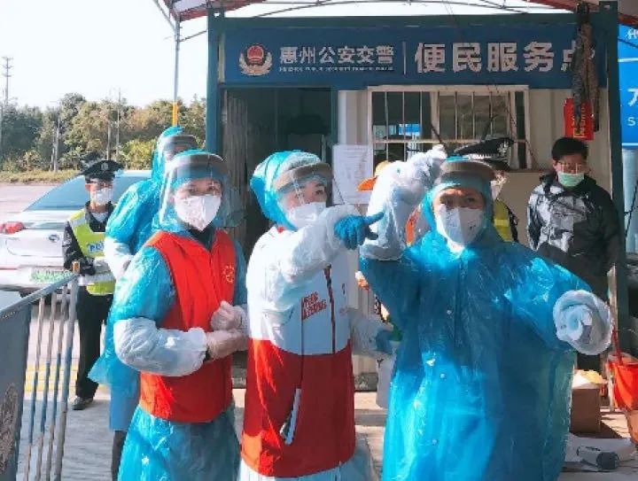 “您好,請配合測一下體溫!”“您好,請掃碼登記一下信息。”惠大高速水口互通出口處,穿著紅馬甲、防護服、戴著防護面罩的王媚一遍遍地重復著這些話,由于長時間說話,又不能喝水,她的聲音已經嘶啞了。