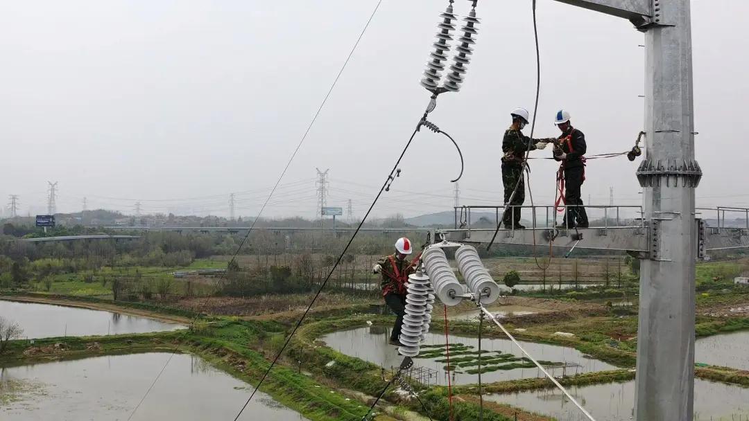 湖北武漢黃金口220千伏變電站110千伏配套工程也于24日開始施工。早上6點,在現場設立的臨時指揮部里,施工人員要經過一道“門”——進行體溫測量和消毒。在一系列工前安全措施后,施工人員分別登上漢蔡高速匝道旁5基24米高的輸電鐵塔,有條不紊地進行驗電、掛接地線、解除跳線、放置滑車,最后拆除1560米長導線。