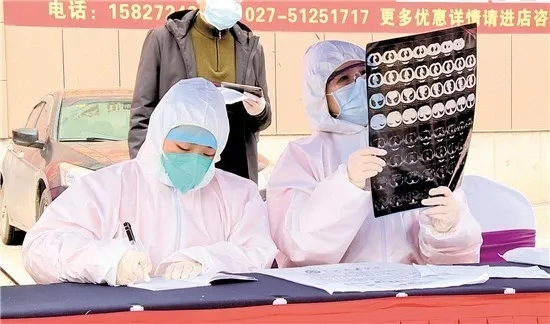 周靜(右)在社區(qū)開展病情篩查工作。湖北日報社供圖