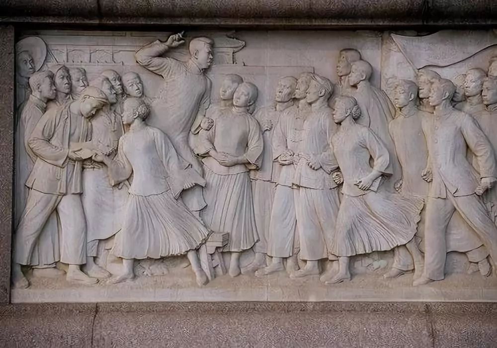 人民英雄紀念碑五四運動浮雕。新華社記者 于小平 攝