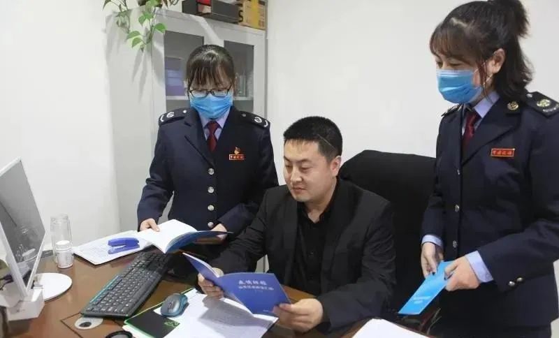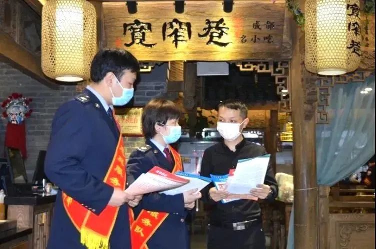 圖為西安市稅務干部向餐飲企業介紹稅費優惠政策,助力企業復工復業!