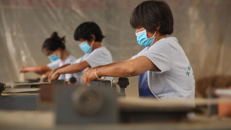 夫妻倆沒有放棄,通過不斷“取經”,發現艾草加工的利潤很好。于是他們一邊堅持種艾草,一邊在政府的支持下,辦起村里艾草加工的扶貧車間。