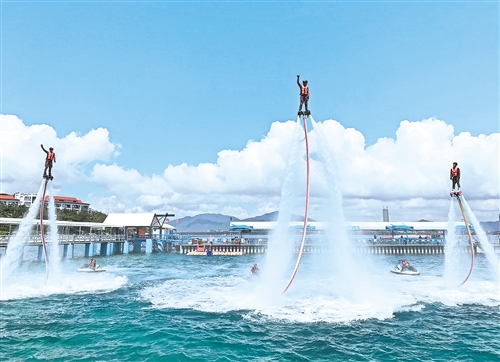 端午假期,三亞上演海上觀光表演項目。 經濟日報-中國經濟網記者 潘世鵬攝