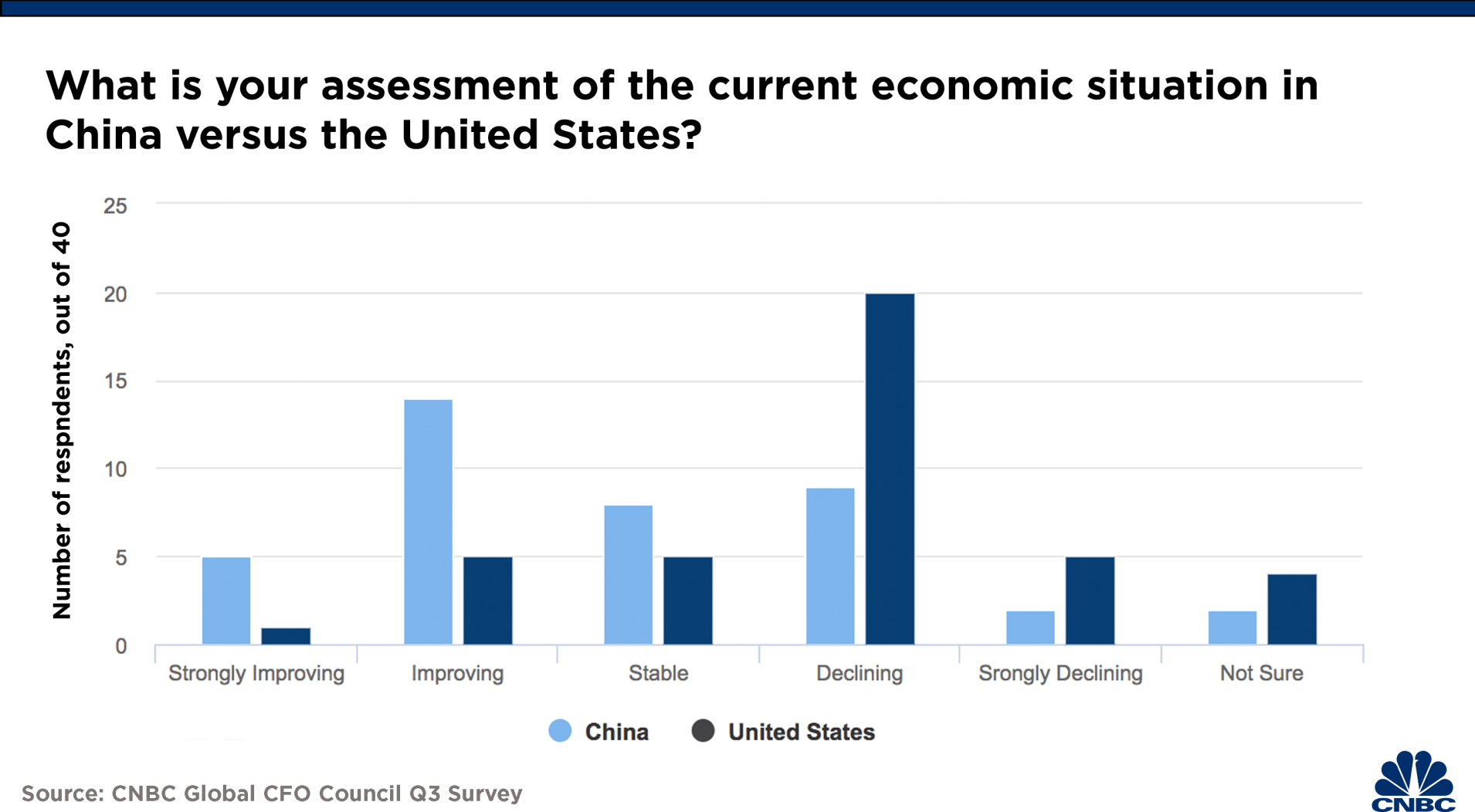△全球首席財務(wù)官對當(dāng)前中美經(jīng)濟的評價(圖片來源:CNBC)
