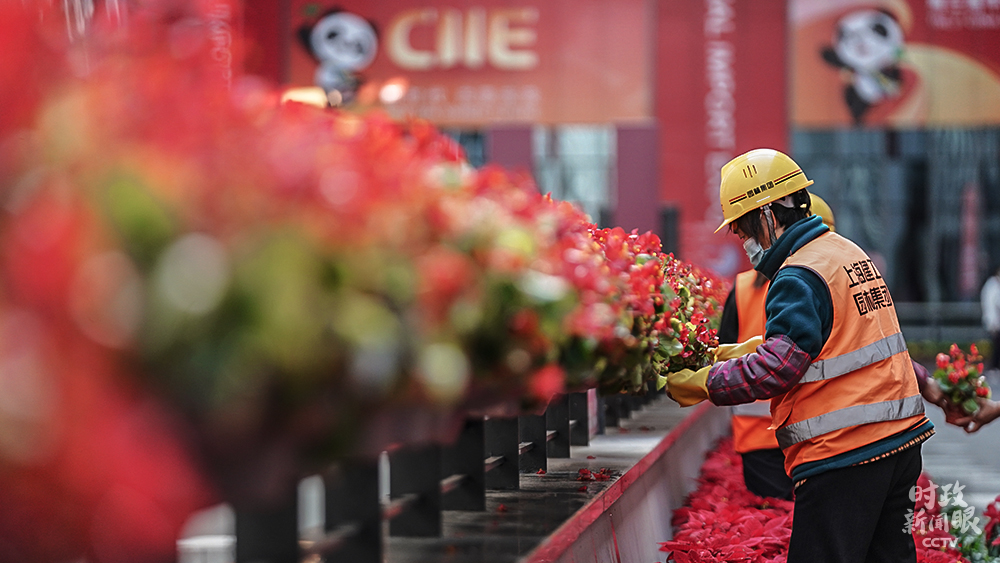 △進(jìn)博會(huì)開幕前,工作人員做最后的整理、布展等工作。(總臺(tái)國(guó)廣記者李晉拍攝)