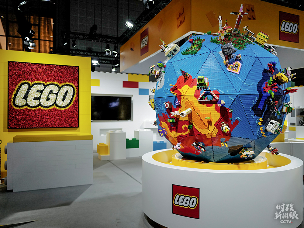△這是進(jìn)博會(huì)消費(fèi)品展區(qū)的“樂造星球”展品,高2.7米(含底座),共包含62750塊樂高積木顆粒,顆?傊亓窟_(dá)106千克。(總臺(tái)國(guó)廣記者李晉拍攝)