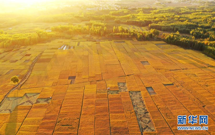 10月18日在河北灤州市古城街道蔣莊村拍攝的稻田(無人機(jī)照片)。華社記者 牟宇 攝