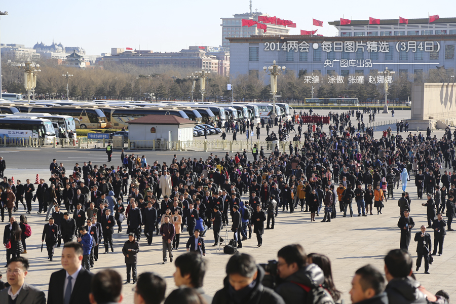 人大舉行預備會議前代表入場畫面(圖片來源:央廣網/涂傲)