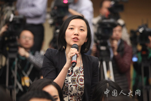 3月11日上午,十二屆全國(guó)人大二次會(huì)議在梅地亞中心舉行記者會(huì),中國(guó)人民銀行行長(zhǎng)周小川等五位嘉賓就“金融改革與發(fā)展”的相關(guān)問題回答中外記者的提問。圖為中國(guó)證券報(bào)、中證網(wǎng)記者提問。羅榮 攝
