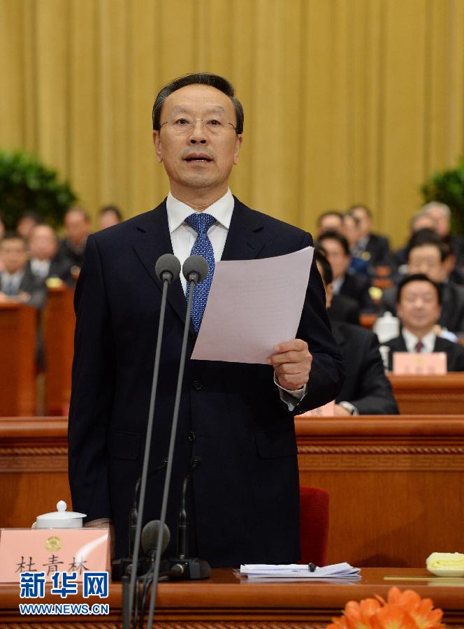 3月3日,中國人民政治協商會議第十二屆全國委員會第二次會議在北京人民大會堂開幕。杜青林主持開幕會。 新華社記者馬占成攝
