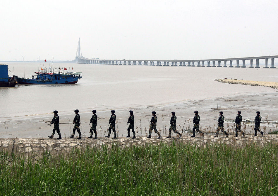 5月15日,武警官兵在上海長江水域武裝巡邏。亞信峰會(huì)臨近,擔(dān)負(fù)上海長江隧橋和重要隧道警戒任務(wù)的武警上海總隊(duì)四支隊(duì)全面進(jìn)入“峰會(huì)時(shí)間”,時(shí)刻保持箭在弦上,確保警衛(wèi)目標(biāo)萬無一失。