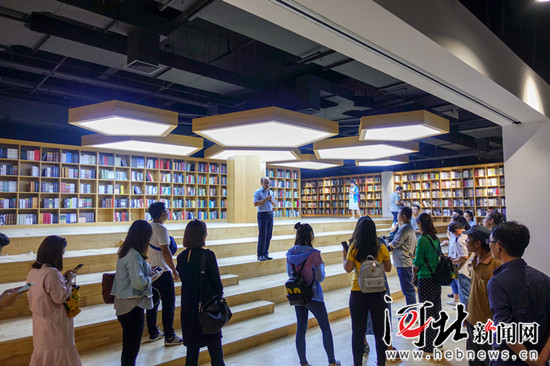 記者們一下大巴車,便能看到來自全國各地的私家車幾乎將偌大的停車場停滿。來自每日甘肅的朱旺驚呼道:“沒有想到非周末也有這么多人來這里買包”,負責接待的和道國際總經理張國開玩笑的說道:“現在來到這里的人已經不光是買包了,還有專門來看書的呢。”原來是白溝今年借保定市首屆旅發大會,重點打造‘旅游+商貿’,將曾經的平臺供應商打造成產業平臺運營者。一個名揚全國的箱包城經過產業升級,打造了集文化體驗、商貿會展、智能科技、文化創意、休閑娛樂等功能于一體的商貿旅游綜合體。