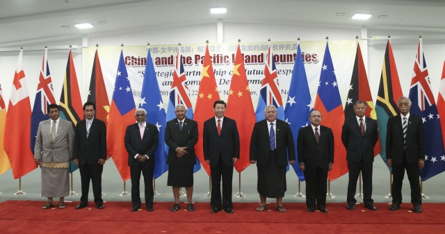 11月22日,國家主席習近平在楠迪同斐濟總理姆拜尼馬拉馬、密克羅尼西亞聯邦總統莫里、薩摩亞總理圖伊拉埃帕、巴布亞新幾內亞總理奧尼爾、瓦努阿圖總理納圖曼、庫克群島總理普納、湯加首相圖伊瓦卡諾、紐埃總理塔拉吉等太平洋島國領導人舉行集體會晤。新華社記者姚大偉攝
