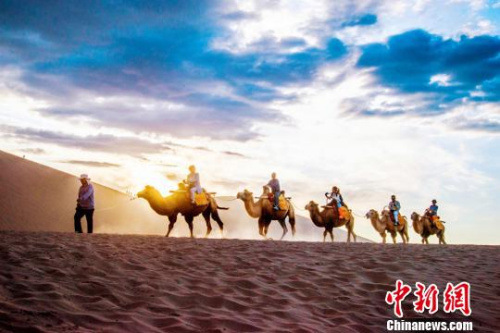 資料圖。圖為游客騎駱駝觀光游覽。 王斌銀 攝