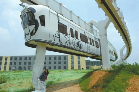 對于公眾普遍關注的高空逃生問題,試驗線上的空鐵已配置了可防600攝氏度高溫的逃生滑道,乘客能以每秒小于3.5米的速度順著逃生管道滑向地面。