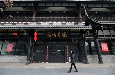 14日,市民走過已“閉店停業”的蓉城老媽火鍋北門店