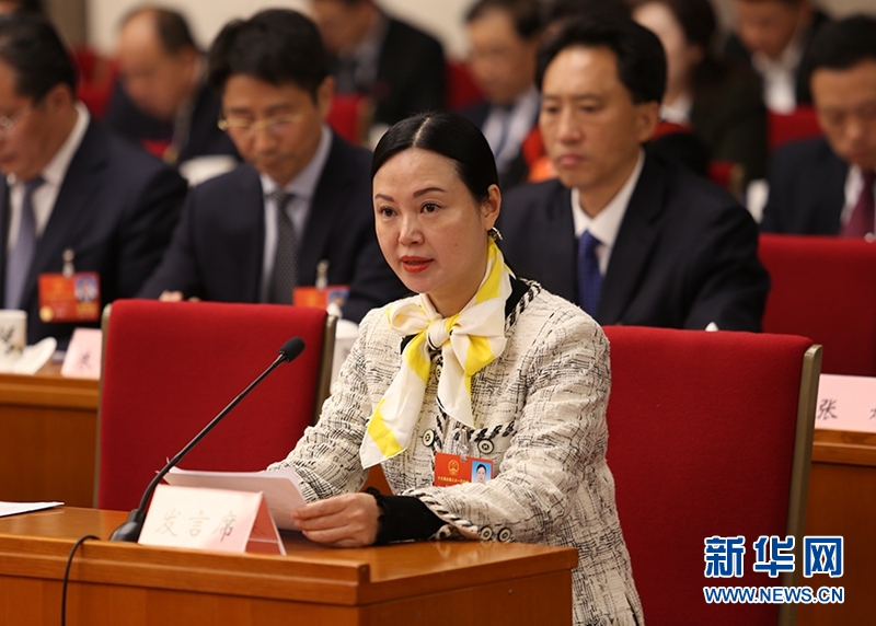 全國人大代表、四川好彩頭食品有限公司董事長何敏在發(fā)言。新華網(wǎng)王釩攝