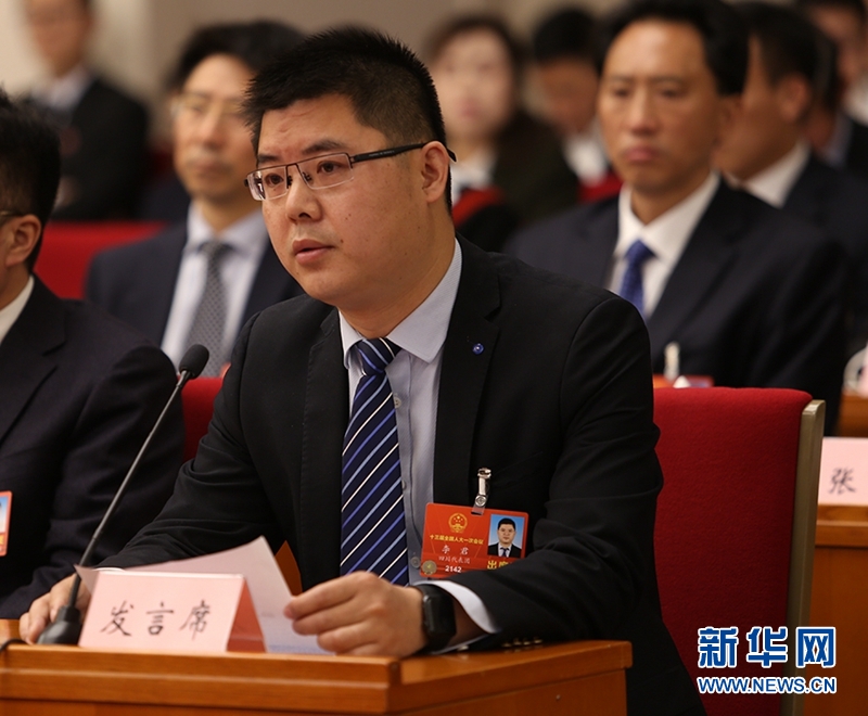 全國人大代表、四川省蒼溪縣白驛鎮(zhèn)岫云村黨支部書記李君在發(fā)言。新華網(wǎng)曹鵬攝