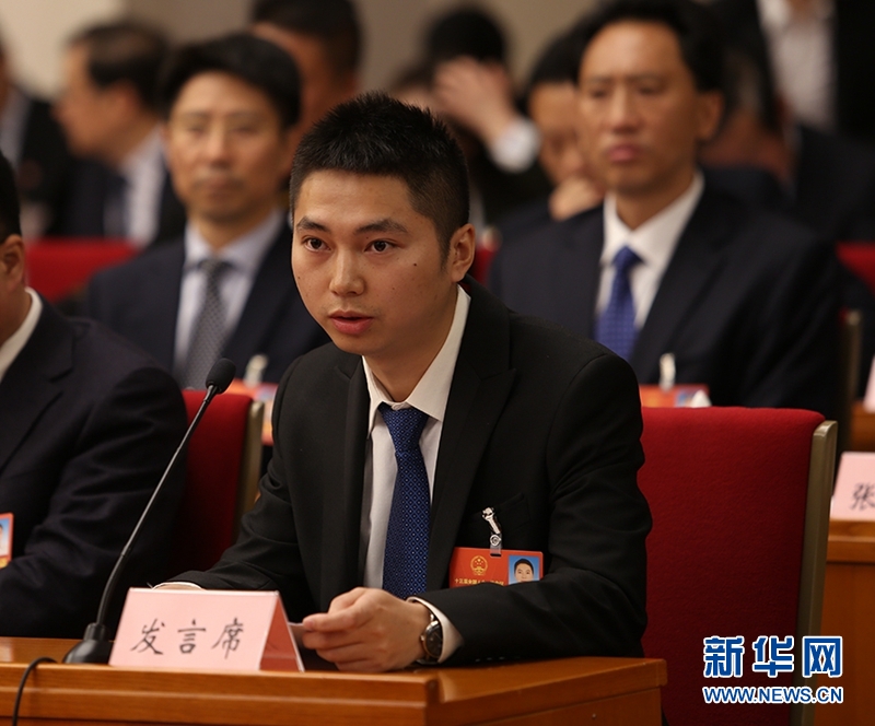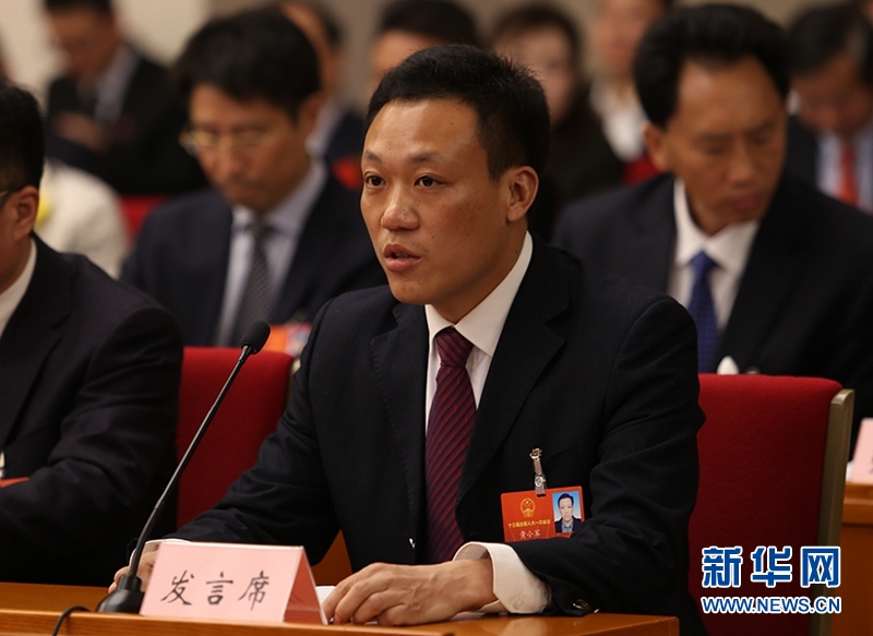 全國人大代表、四川省渠縣巨光鄉(xiāng)金土村黨支部第一書記黃小軍在發(fā)言。新華網(wǎng)曹鵬攝