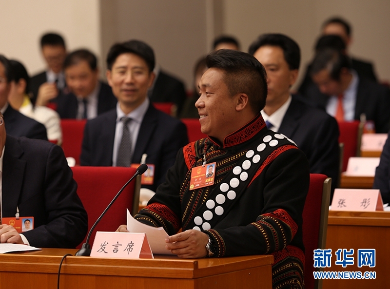 全國人大代表、四川省西昌市安哈鎮(zhèn)長板橋村黨支部書記余彬身著著彝族傳統(tǒng)服飾進行了發(fā)言,他認為要走好鄉(xiāng)村振興發(fā)展道路,就要堅定不移地走生態(tài)優(yōu)先、綠色發(fā)展之路。余彬所在的長板橋村就是很好的例子。以前的村子交通落后,群眾生活水平不高,人均年收入不足2000元。黨的十八大以來,在黨中央的關懷下,依托當?shù)刎S富的旅游資源,村子找準發(fā)展思路,大力發(fā)展鄉(xiāng)村旅游。2017年,觀光游客達60萬人次,實現(xiàn)旅游收入3000余萬元,全村的人均年收入達到11000多元。余彬最后用一句彝語感謝了黨和政府的好政策。