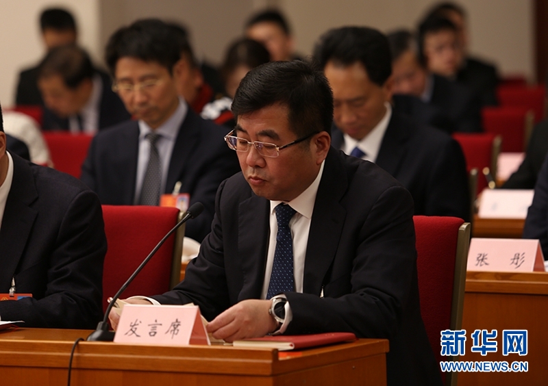 全國人大代表,四川省樂山市委副書記、市長張彤在發(fā)言。新華網(wǎng)曹鵬攝