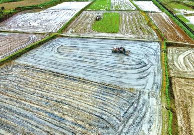 圖為3月5日,鄰水縣一農業專業合作社的新型職業農民在翻耕托管的田地。