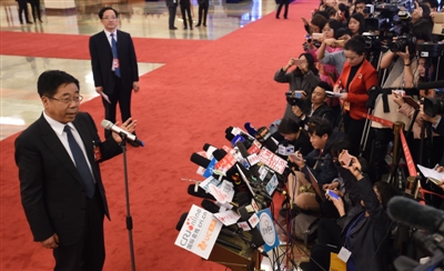 3月3日,中國人民政治協商會議第十二屆全國委員會第五次會議在北京人民大會堂開幕。這是教育部部長陳寶生接受采訪 新華社發