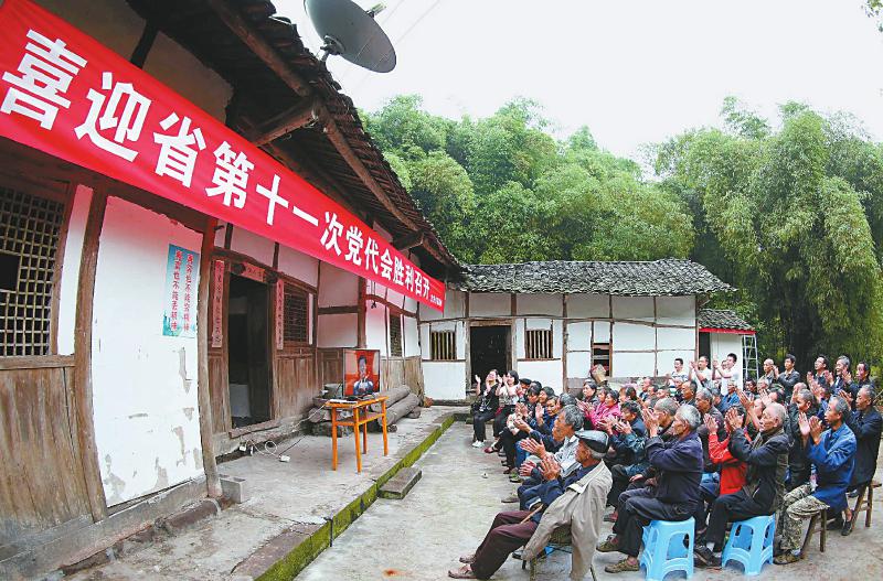 5月24日上午,阿壩州黑水縣麻窩鄉木日窩村,村支部書記羅讓和全村8名黨員通過電視收看省第十一次黨代會開幕盛況。
