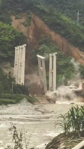 山體滑坡沖毀8根橋墩 在建雅康高速或微調線路,7月27日晚,疑為雅安市境內雅康高速在建的四座橋墩瞬間被毀的視頻在四川雅安市的微信群、朋友圈內流傳。7月28日17時,雅康高速公司通報稱, 受極端氣候影響,連日來天全縣境內多次發生強降雨,境內多處多次發生山體塌方、滑坡等自然災害。