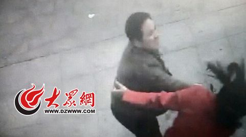 視頻監控畫面顯示,被曝光的濰坊城管干部正擊打孟女士。