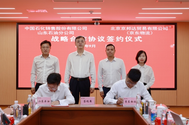 9月10日,中國石化山東石油與京東物流集團在濟南簽署戰略合作協議,雙方建立長期戰略合作關系。