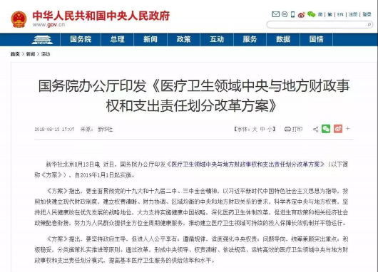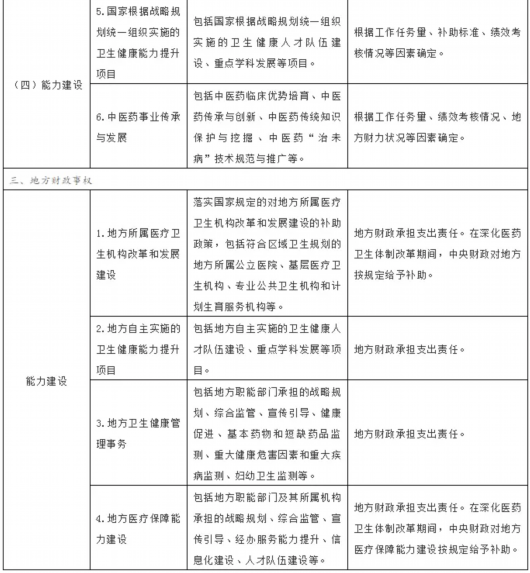 《方案》明確,按照實(shí)施《“健康中國(guó)2030”規(guī)劃綱要》、深化醫(yī)藥衛(wèi)生體制改革的總體要求,從公共衛(wèi)生、醫(yī)療保障、計(jì)劃生育、能力建設(shè)四個(gè)方面劃分醫(yī)療衛(wèi)生領(lǐng)域中央與地方財(cái)政事權(quán)和支出責(zé)任。