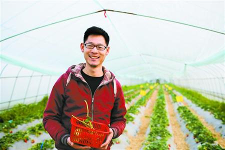 1988年出生的孫鵬是西南科技大學的畢業生。三年前決定回鄉種草莓時,他甚至還不知道草莓苗子長什么樣。如今,他包下了30畝地,一面種草莓,一面種水稻。