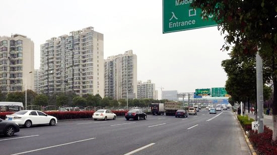 這段楊高南路共5車道,中環(huán)線的上匝道口設(shè)在最右側(cè)的第5條車道。原來(lái),從三林路的兩條左轉(zhuǎn)道拐進(jìn)楊高南路后,車輛通常位于道路左側(cè)的第1條或第2條車道。而要上中環(huán),司機(jī)們完成左轉(zhuǎn)后,必須盡快變道到最右側(cè)的兩條車道,否則就會(huì)錯(cuò)過(guò)上匝道。