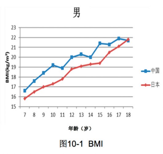 其中,2014年,7-18歲中國男生平均體重48.7kg,高于日本男生的44kg,而在2016年,7-18歲中國男生平均體重50.4kg,高于日本男生的44.3kg。