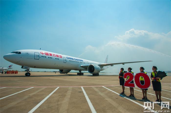 央廣網上海7月23日消息(記者吳善陽)一架編號為B-7882的波音B777-300ER飛機今天從西雅圖飛抵上海浦東機場,飛機經過“水門”儀式的洗禮,正式加盟東航650余架機隊的“大家庭”,標志著東航于2012年4月采購的20架波音777-300ER全部交付完畢。20架“集結”完畢之后將發揮出更佳的規模化優勢,更好地服務于“一帶一路”建設,服務于上海樞紐建設,為全球乘客帶來非同一般的空中旅行體驗。