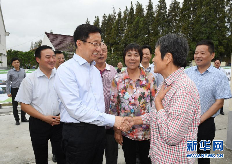 9月27日,韓正來到浦東合慶鎮勤奮村了解“五違”整治最新進展,與村民黃月琴老媽媽交流。