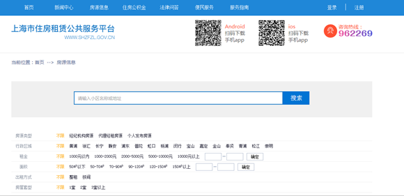 圖片說明:上海市住房租賃公共服務(wù)平臺頁面