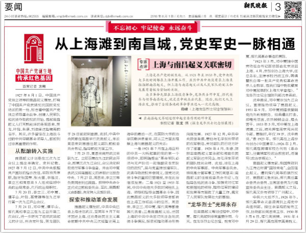 上海市共產(chǎn)黨的誕生地。從1921年至1933年,黨中央絕大多數(shù)時(shí)間都在上海開(kāi)展工作。雖然中共中央沒(méi)有在上海直接指揮南昌起義,但上海與南昌起義以及人民軍隊(duì)的創(chuàng)立和發(fā)展有著極為密切的關(guān)聯(lián)。