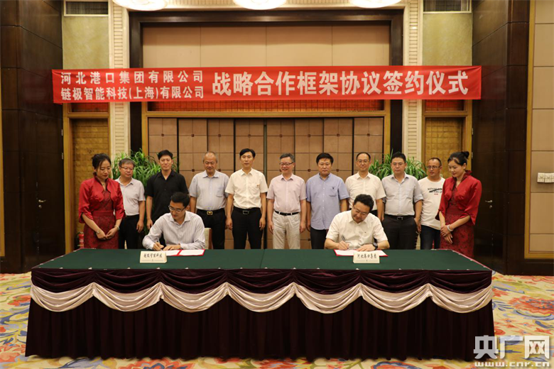8月31日下午,河北港口集團、鏈極科技雙方正式簽署戰略合作框架協議。(央廣網發 鏈極科技 供圖)