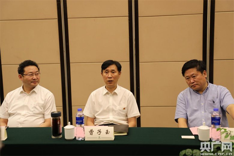 河北港口集團董事長曹子玉(中)在簽約儀式上發言,副董事長兼總經理劉廣海(圖右)、副總經理陳海烈(圖左)陪同出席(央廣網發 鏈極科技 供圖)
