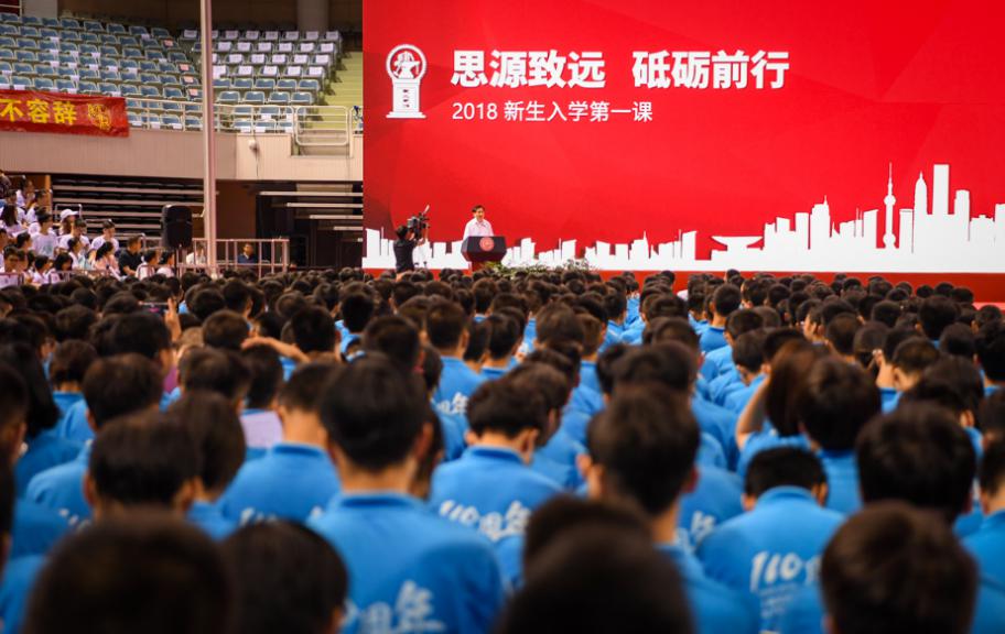 上海交大歷來重視學生理想信念教育和價值觀塑造,著力培養學生的社會責任感、創新精神和實踐能力。每年開學由學校黨委書記為新生講授“第一課”,到2018年,“新生入學第一課”已堅持了十三年,成為交大的一項傳統。