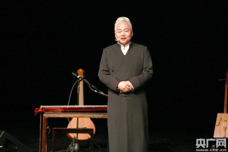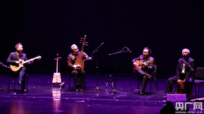 在隨后的演出中,方錦龍攜手佛拉門戈吉他演奏家段昌武、打擊樂演奏家徐德梁、貝斯演奏家蔡繼文組成老“F4”組合,開啟了一場寓“樂”于樂的音樂會。曲目涵蓋古今、無論西東,不僅有上下五千年的中外管樂,方錦龍更以一把五弦琵琶演繹各地風(fēng)情。此外,古琴、吉他、鋸琴等也依次亮相,為觀眾帶來一場沿著絲綢之路、穿梭于東西方的音樂之旅。