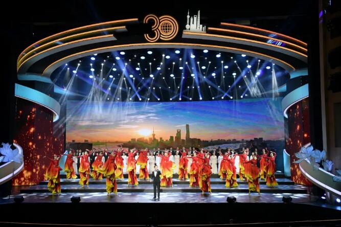 晚會以1990年央視《新聞聯(lián)播》播報中共中央、國務(wù)院宣布浦東開發(fā)開放的畫面開篇,通過“音詩畫”立體藝術(shù)呈現(xiàn)方式,采用多媒體交響配樂朗誦串聯(lián)各篇章節(jié)目,深度挖掘紅色文化、海派文化、江南文化資源,凸顯詩韻秀美、跨界融合、科技創(chuàng)新,充分彰顯上海“海納百川、追求卓越、開明睿智、大氣謙和”的城市精神和“開放、創(chuàng)新、包容”的城市品格。