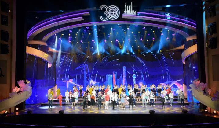 整臺晚會由《風(fēng)從東方來》《標桿新時代》《領(lǐng)航向未來》三個篇章組成,全面回望浦東開發(fā)開放30年來波瀾壯闊的發(fā)展歷程和取得的舉世矚目成就,展現(xiàn)浦東三十而立再出發(fā),堅決貫徹以習(xí)近平同志為核心的黨中央決策部署,新時代勇?lián)鷩覒?zhàn)略使命、奮力譜寫改革開放新輝煌的勇氣和信心。參與浦東開發(fā)開放的奮斗者、奉獻者、建設(shè)者代表也來到舞臺上,以質(zhì)樸的語言表達對“而立浦東”的祝福心聲。