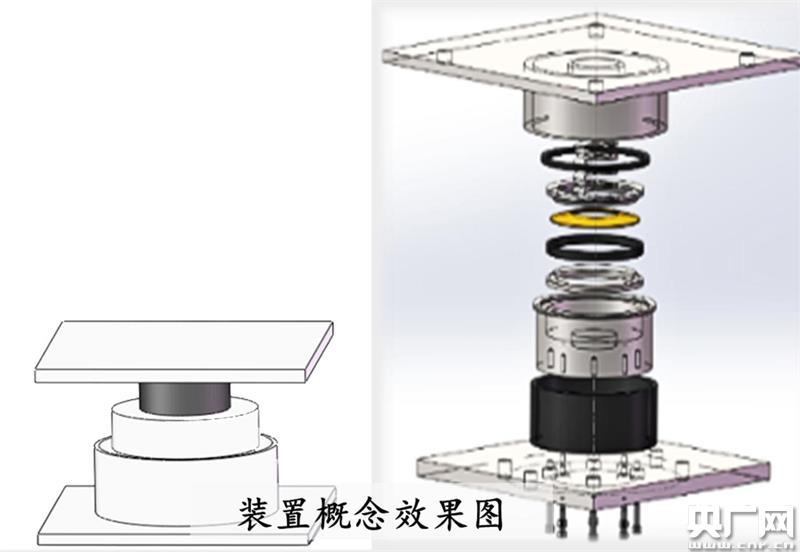 帶剛度自適應(yīng)特性的三維震振雙控裝置概念效果圖(本文圖片:央廣網(wǎng)發(fā) 同濟大學供圖)