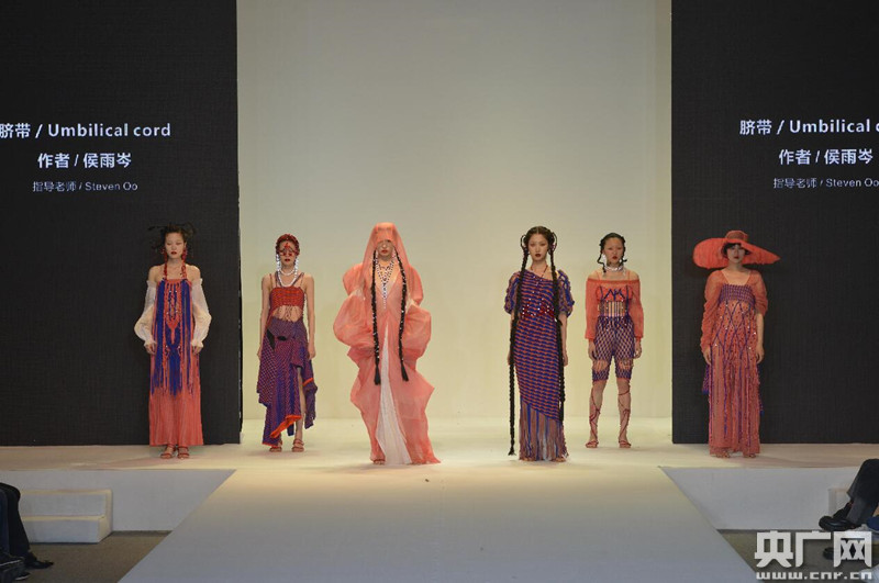 發(fā)布會(huì)結(jié)束后,東華大學(xué)服裝與服飾設(shè)計(jì)專(zhuān)業(yè)(中日合作班)的準(zhǔn)畢業(yè)生侯雨岑長(zhǎng)舒了一口氣,她的系列設(shè)計(jì)作品“臍帶”剛剛成功發(fā)布。