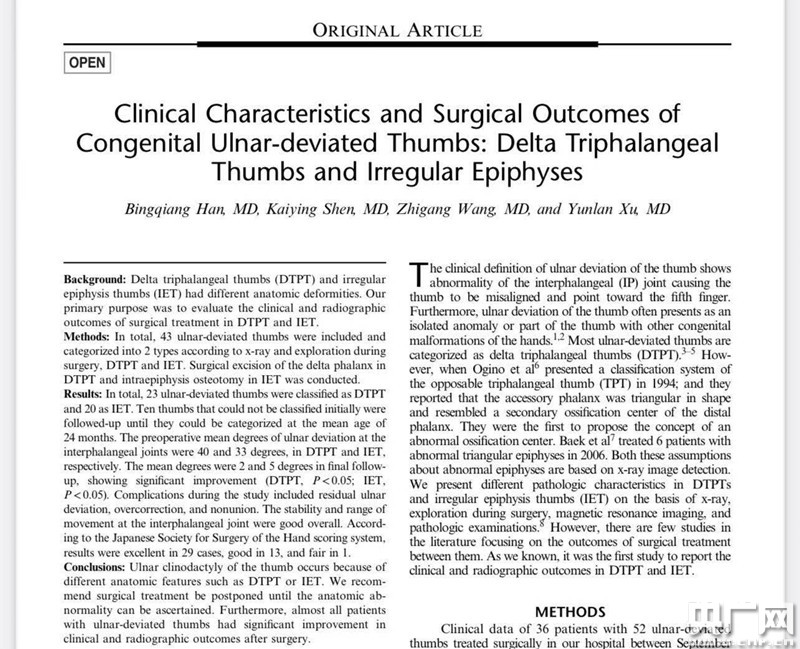 拇指在手部功能中占有舉足輕重的作用,拇指尺偏畸形并不少見,它給患兒及家長帶來極大的心理困擾,甚至造成兒童社交障礙;與此同時,尺偏的拇指無法完成捏、握、對掌等精細(xì)動作,影響生活質(zhì)量。手術(shù)切除“多余”指骨或行指間關(guān)節(jié)融合術(shù),術(shù)后雖然恢復(fù)了拇指力線,指間關(guān)節(jié)活動仍難以滿足日常生活需要,該畸形的治療仍然是小兒骨科界的一大難題。