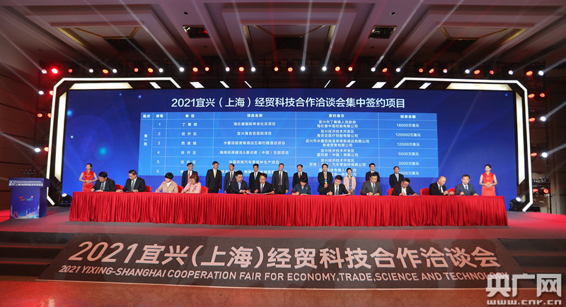 央廣網(wǎng)上海4月18日消息(記者楊靜)今天,宜興(上海)經(jīng)貿(mào)科技合作洽談會在上海舉行,總投資435.6億元的44個項目集中簽約,涵蓋節(jié)能環(huán)保、智能裝備、生物醫(yī)藥等多個新興領(lǐng)域。