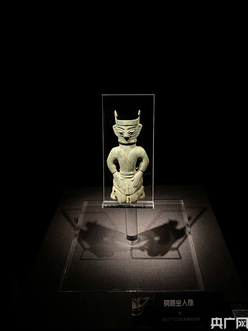 銅跪坐人像(央廣網記者唐奇云 攝)